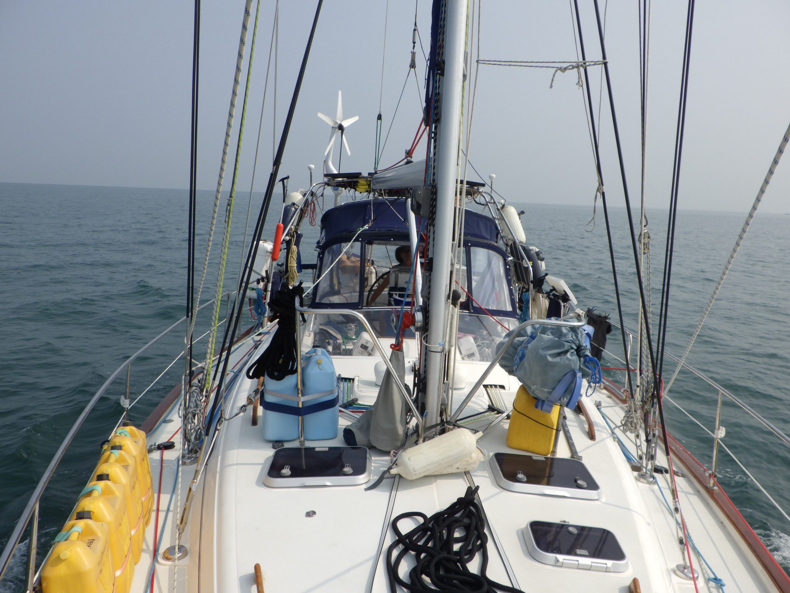 - Genoa: 110% Hood Vektron (2011) high-cut for visibility; additional 140% genoa for light air.