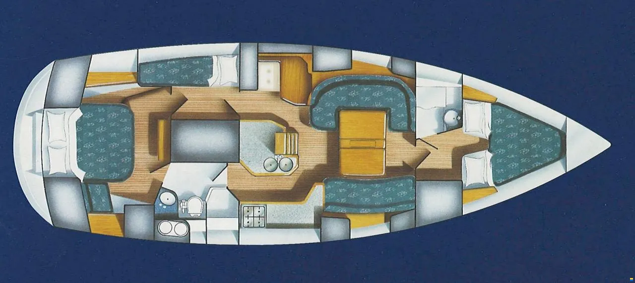 - Lines: All control lines led aft to the cockpit for safety, with the exception of Mainsail and Genoa halyards. Selden Deck Organizers (2) with ball bearings